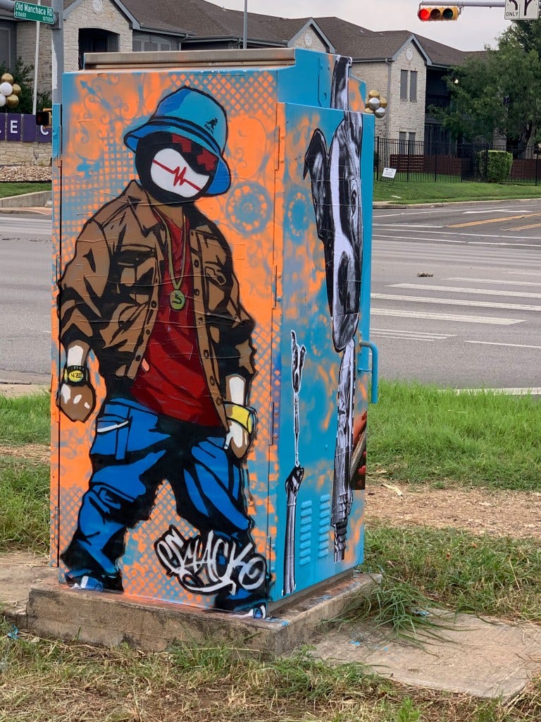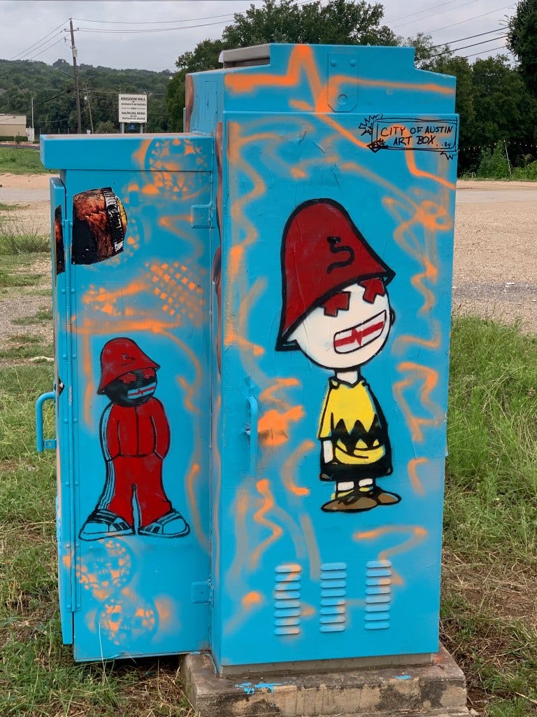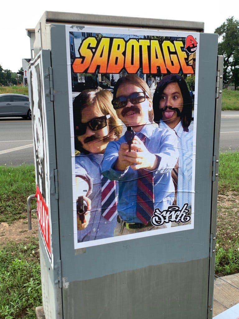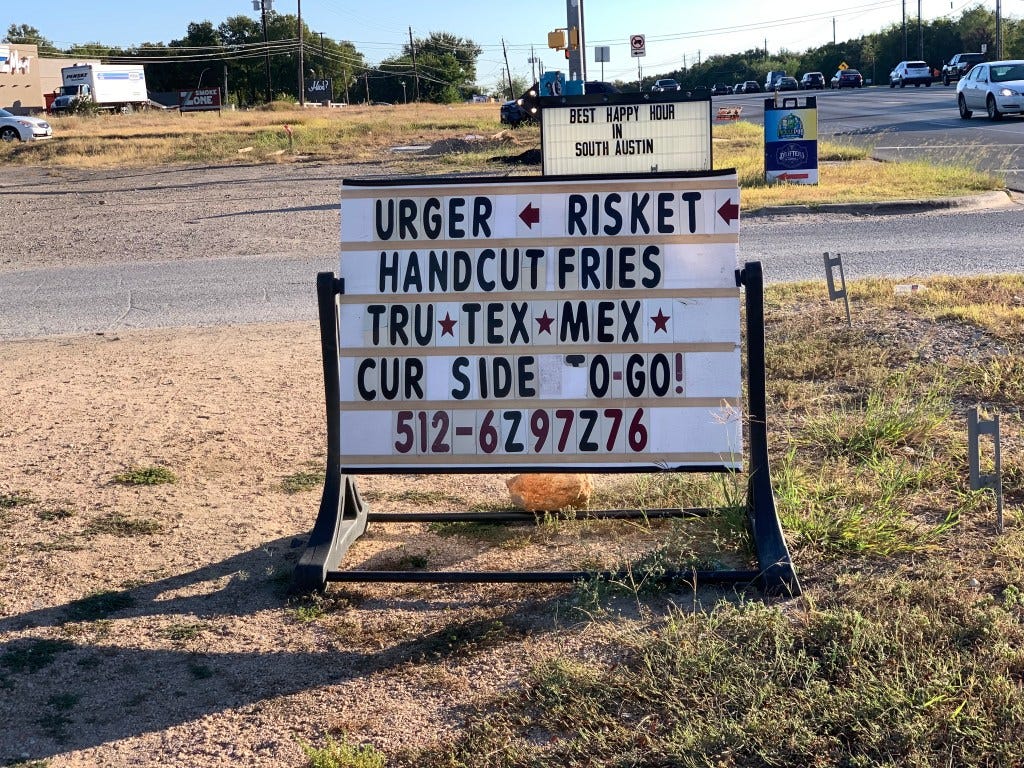 Same intersection, just a few steps south, closer to South Austin Beer Garden. (You can see the same marquis sign, from a different angle on a different day, behind that metal box above with the Ojay sticker.) I’m not sure whether some (b)andit or (b)urglar stole all the B’s, or they just ran out. And I assume the Z’s replace 2’s, unless they replace more 7’s. Also, if you get on the cur’s bad side, is he liable to bite you?