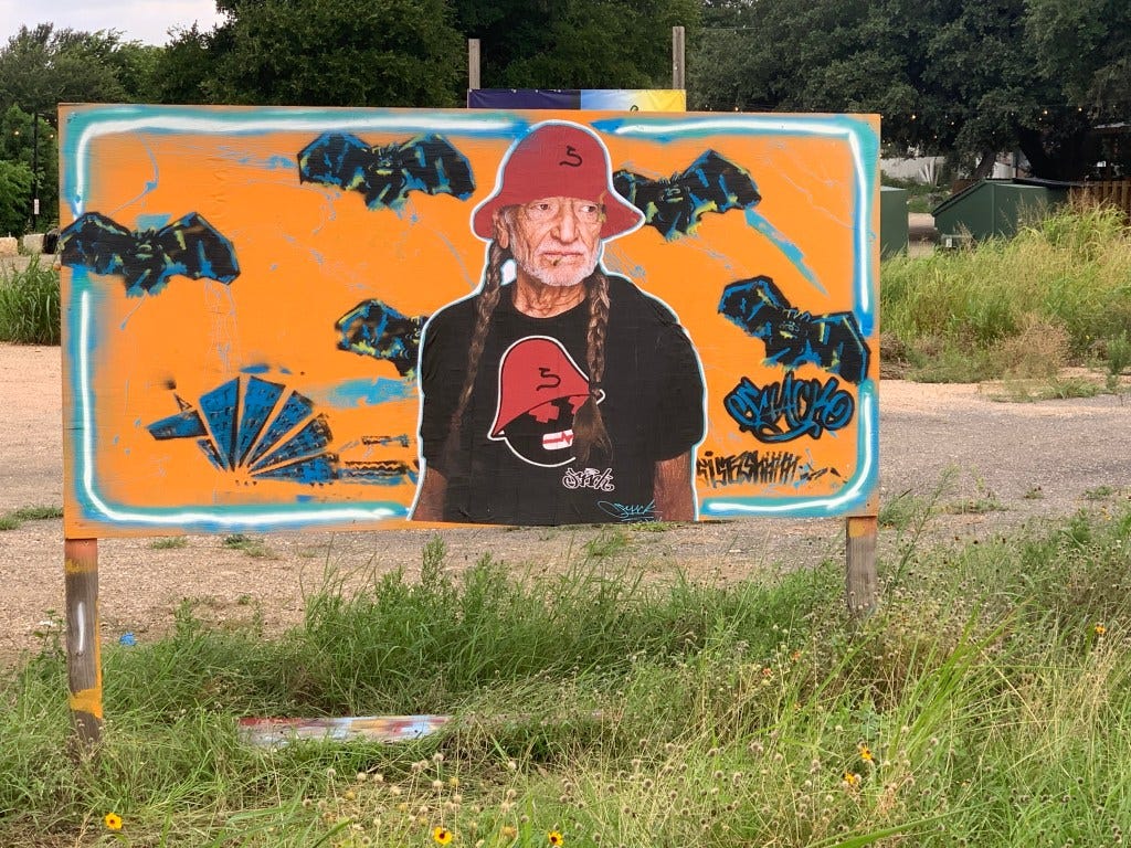 On the sidewalk beside a building that has been a dance studio (Dance By Carly), a karate studio (New Era Martial Arts), and apparently some kind of covert place of worship, sometimes maybe all at the same time, at intersection of Old Manchaca, Riddle and (from its rear entrance) Allred. The “other venues” could include the Americana country roadhouse Sam’s Town Point a minute or two further up Allred, or the dozen or so bars on Manchaca south of Slaughter. I assume this sign was put up by whoever ran the church, but you never really know.