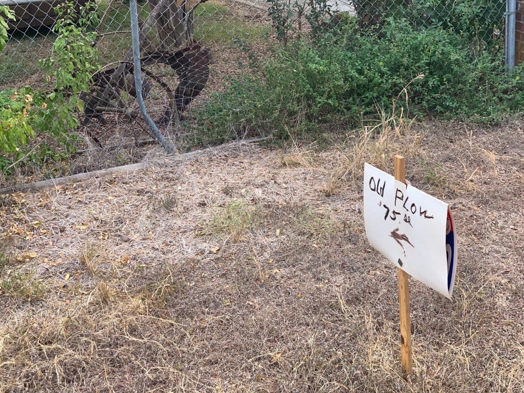 On east side of Old Manchaca, probably around Drew or Sanders. Don’t know if they ever sold the plow. At one point I also remember a cow (which rhymes with plow) on sale for $1000. I don’t think it was on quite the same property, but it was definitely somewhere near there.