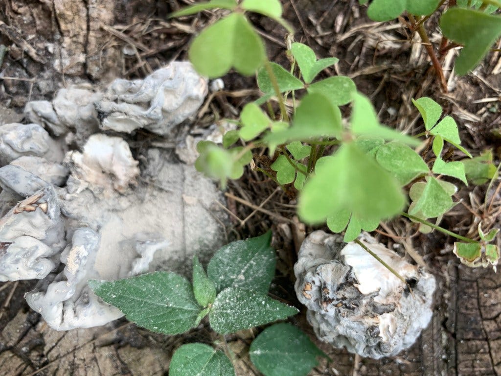 For instance, I have no idea what’s in the lovely photograph at the top of this page, so I’ll toss a dart a the wall and probably land way wide of the bullseye with Marasmius rotula (pinwheel mushrooms), or maybe their cousin Marasmius albuscorticis, desribed thusly by Susan and Van Metzler in Texas Mushrooms: A Field Guide: “The cup is white, thin fleshed, and nearly translucent”. As in previous posts, my primary print reference source besides the Metzler manual is Mushrooms: How to Identify and Gather Wild Mushrooms and Other Fungi by Thomas Læssøe. To be honest I probably need to acquire newer books. And to type better explanatory notes into my phone when I take pictures.