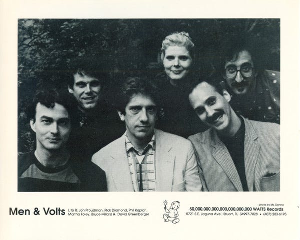 Men & Volts “Texas“ (from Tramps in Bloom, 1984; folk-rooted Boston post-punk band): A modified Diddley rhythm as done by the early J. Geils Band, under a rough and ragged but jumpity hoppity hyperactive shouter suggesting we “go to Texas, where the freaks are” — fairly certain this is Men and Volts. A kind of warped and cockeyed art-rock version of boogiefied blues-rock, owing obviously to Captain Beefheart. “C’mon c’mon pack your bags, why doncha wanna go?” Four decades ago, Austin really was weird. Or so legend has it. 7