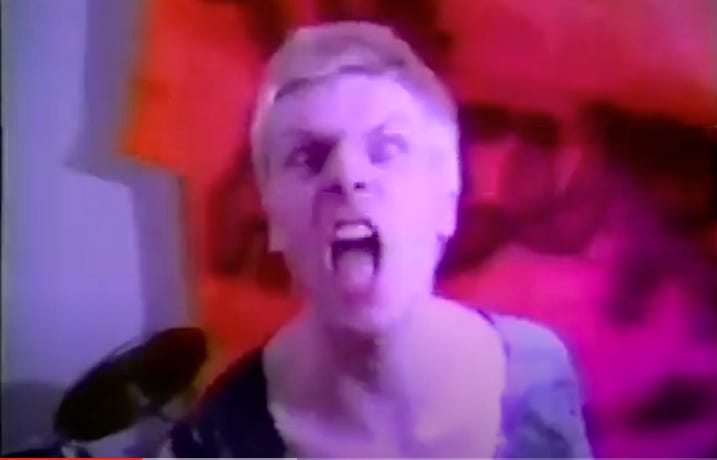 Vacum “Den Perfekta Människan” (from Maskerad EP, 1980, and on 2003 Massproduktion Sweden compilation Punksvall 1979-80; “punk band from Sundsvall, Sweden” [discogs]): European of some sort, though at first I figured British (in fact, I figured it was about a “shop.”) I like this one’s off-kilter staccato herky jerk, the feeling that the musicians are not always necessarily on the same page, but they keep trying to get back in line and straighten things out. The guy’s voice has a punk rock bite, but on his own terms. Ample and chunky, as well. 6
