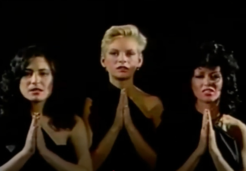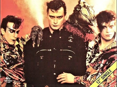 Litfiba “Lulu’e Marlene“ (from Desaparecido, 1985, and subsequent collections; Florence, Italy new wave rock band): Spooky horror movie effects, hard drum propulsion — Goth rock, but paradoxically bright about it. Low moaning, probably in Spanish; in the Romance language world were Catholicism lives next door to Paganism, Goth always made a lot of sense. I’d categorize this with La Castañeda and Caifanes, from Mexico. The vocal has their romantic fanciness, holding no decorative frill back, way less stiff than a Brit or American would intone a dirge like this — all sorts of of “Oh-oh-oh-ohhhhh Aha-aaaaaah”s. Keyboard plinks along, drum turns martial during bridge, tempo picks up after a bit, almost to doubletime. 7