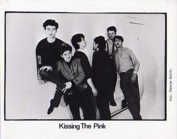 Kissing the Pink “Love Lasts Forever“ (single and on Kissing the Pink EP, 1983; London synth-pop band): Commercial new wave fake-funk bassline in a soft synthesizer ballad — Men At Work-like? Fixx? Duran Druan? Power Station? INXS? Thomas Dolby?…Oh wait, my second guess was right, it sounds just like “One Thing Leads To Another” by the Fixx. My wife, who was born in 1969 (nine years after me), might be the only person I know who has ever purchased a Fixx record. She was also in a Men At Work fan club as a teenager (I think they sent her a membership card and a monthly newsletter), which has always struck me as adorable for some reason. Anyway, these guys are either British or Americans trying very hard to sound British, and trying really hard to sound funky either way. Blasé male singer, joined now and then by a more whispery woman who mainly seems to talk about her hair, which as far as I can tell has nothing to do with the rest of the song, which makes her rather mysterious. Title seems to be “Love Lost Forever” — modern, no doubt. And it really does sound like a failed attempt to get onto MTV. Wonder what the video was like. 6.5