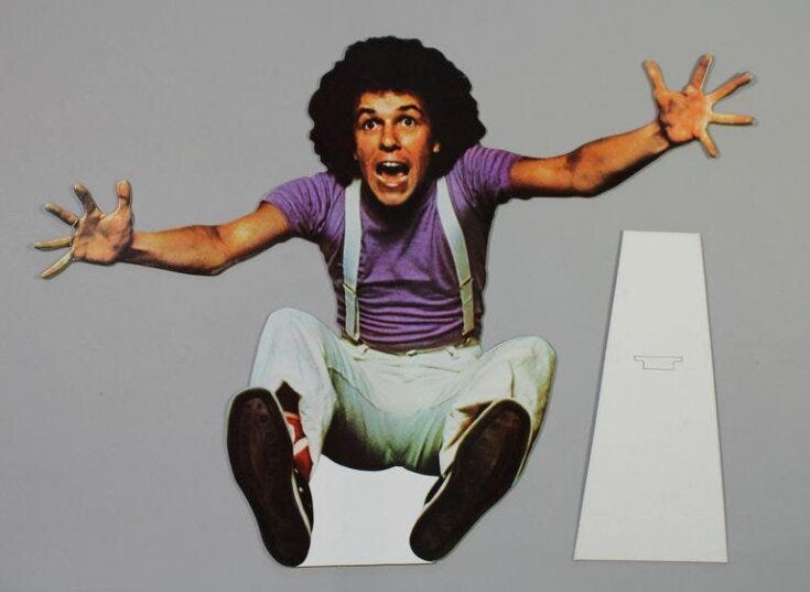 More disturbingly, there’s what the seventh and eighth selections have in common. Black Randy and the Metrosquad, as far as I can tell and despite his stage name, were fronted by a white person. The sleeve of his “Trouble at the Cup ” single, the record I consider below, is a 12-panel comic strip. The first three panels show him being raised by Black parents in the South Bronx, looking into his “first mirror” at age 12 and noticing “something is not Black” (someone next to him taunts “You’re not black”), then applying Black shoe polish to his face before heading out west where he engages in sexual acts with men, women and animals. Sometimes he has much darker skin than other times.