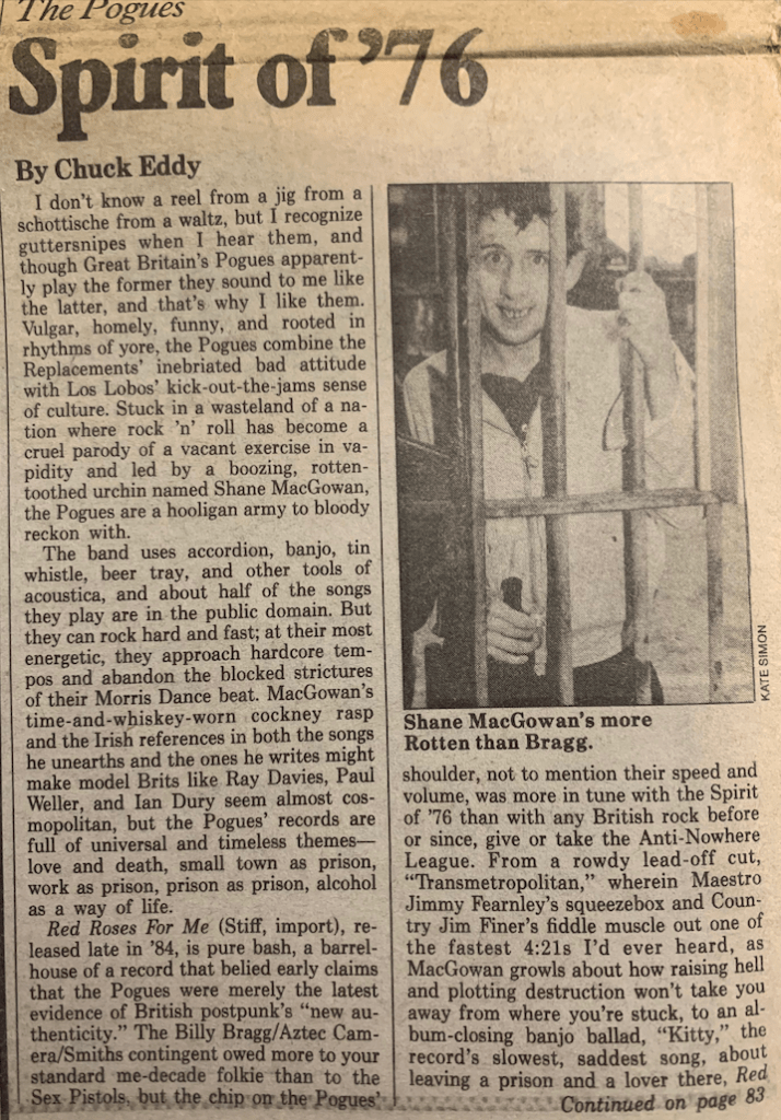 Probably a good idea to avoid driving through any Irish neighborhoods — e.g., ones I used to call home in Sunnyside, Queens and Manayunk, Philadelphia — where quite a few will no doubt be poured out tonight for Shane MacGowan and quite a few more than that will no doubt be consumed. Here’s something I wrote about Shane and his band almost 40 years ago. If you’re prone to alcoholism yourself, imbibing their first two or three albums remains downright dangerous. Rest In Poguetry.