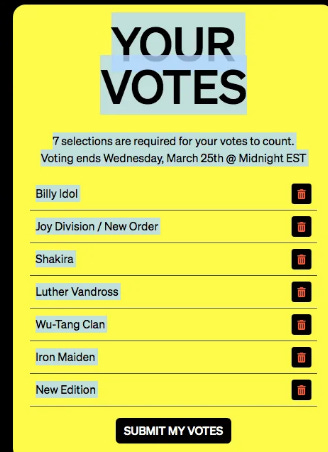 As somebody who posts as Future Rock Legends suggested on Bluesky, “The electronic ballot incentivizes more snap decisions,” which is totally true — I just wanted to get it over with, too much on my plate already. Next year I’ll vote better.